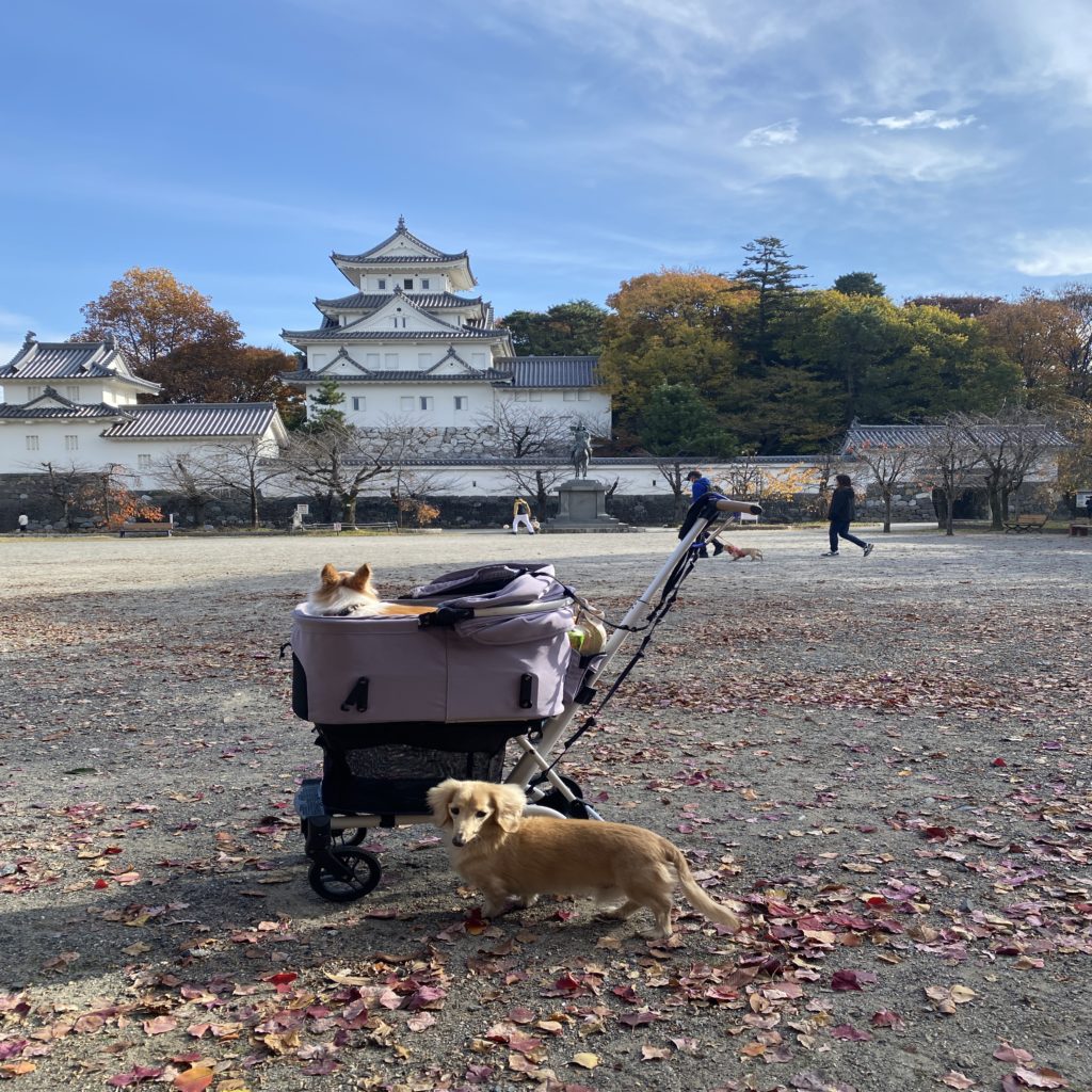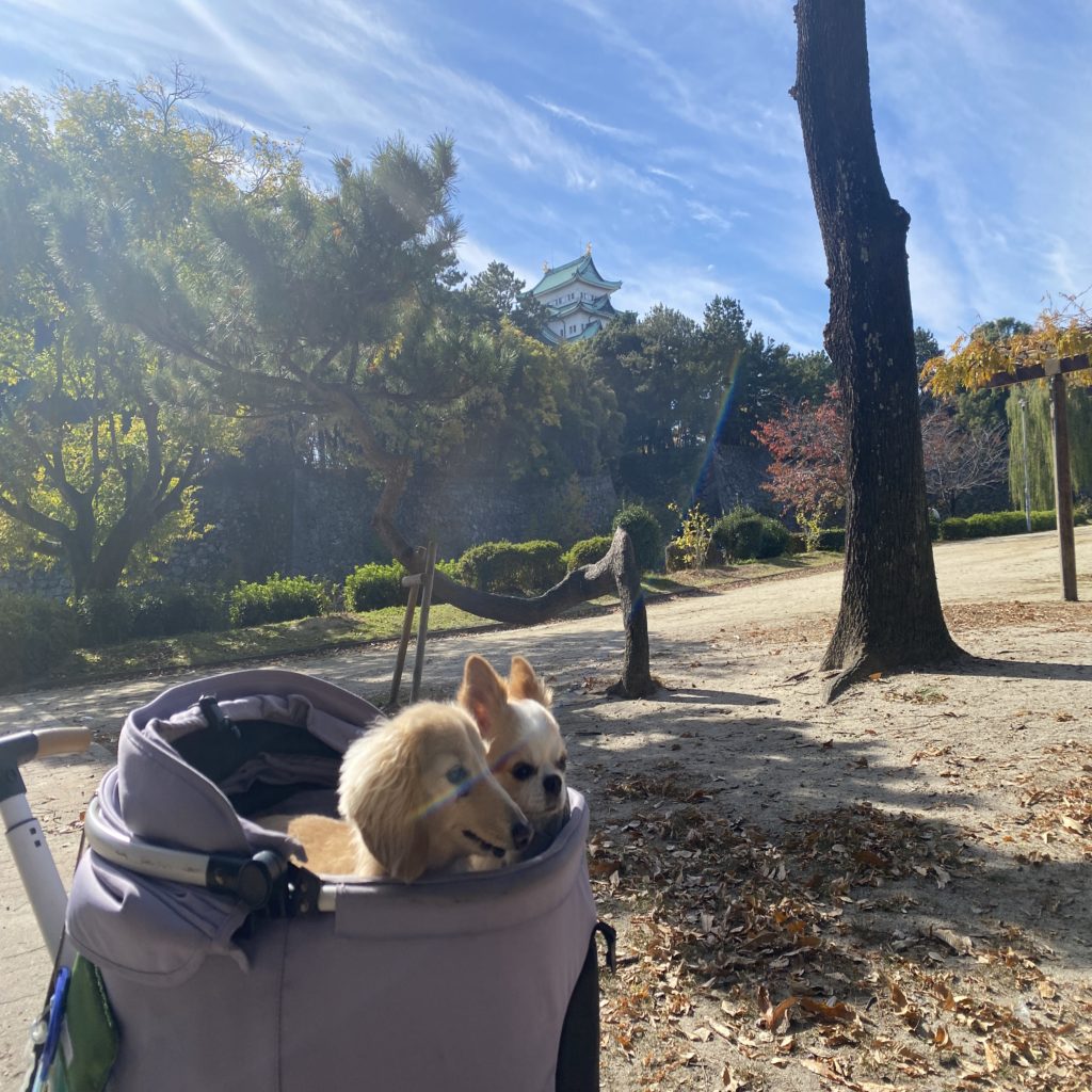 とはいえ、犬連れでは入れないので、その前の広場を散策。とても天気がいい日だった。